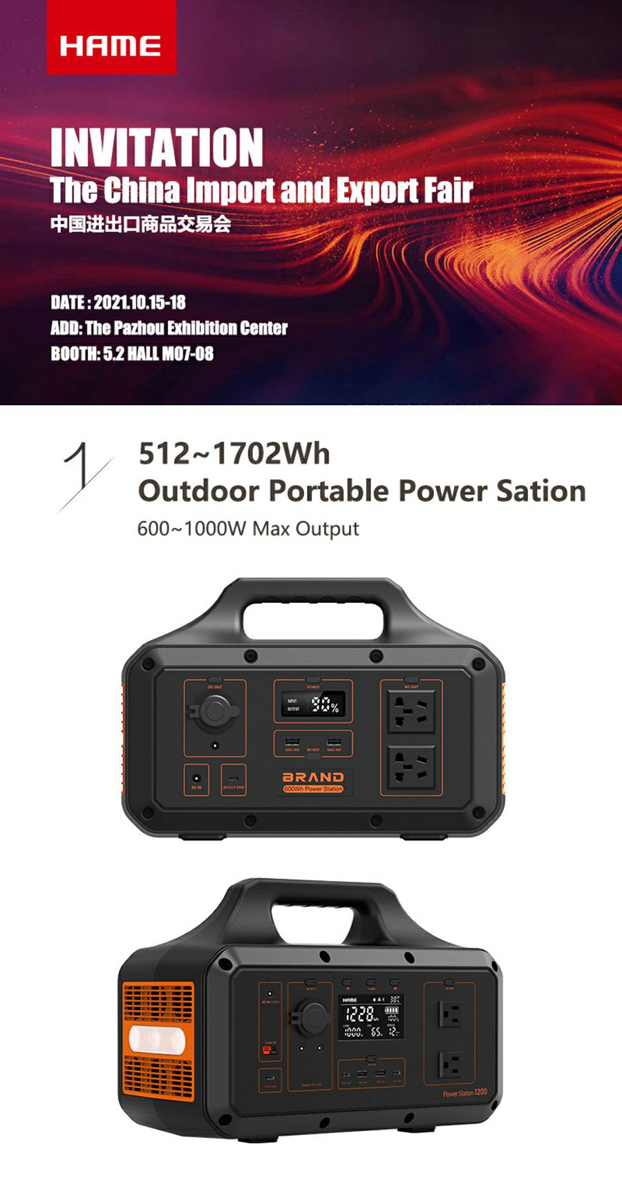 星空体育(中国)官方网站首页-登录入口携户外储能电源和MagSafe移动电源出席第130届广交会线下展览,展台位于广交会展览馆A区5号馆5.2 M07~08,欢迎莅临。